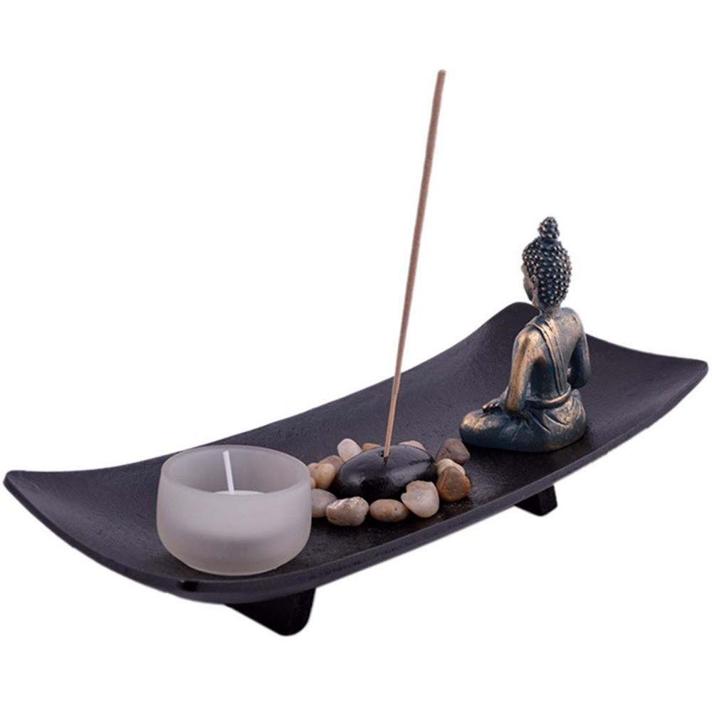 Quantity: 1 Candle Holder, 1 Incense Burner, 1 Buddha Figurine, 1 Wood Stand