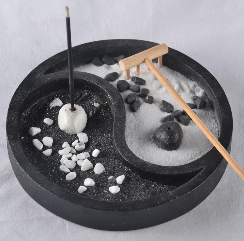 Calm your mind and soul with this mini Zen garden designed with an incense holder. Inspired by the yin-yang design it can also be a perfect decoration in your Zen-themed room. Item does not occupy large storage space.
